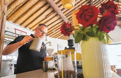 弗兰克精心打磨的咖啡,在镜头下流转着独特光泽,成为游客必拍的风景。