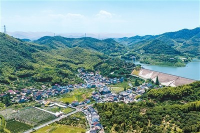 俯瞰毛竹咖啡所在的毛岙村,依山傍水风景如画。