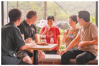 弗兰克曾是一家世界500强企业在中国的生产部高管。2022年,他来到毛岙村,被满目绿荫、宛如图画的景致打动。这个村庄拥有98%的森林覆盖率,一直坚守“不砍一棵树、不引一家厂”的规矩,把红豆杉林修成康养步道,将水库岸线改造成骑行绿道。“这里与我德国老家的乡村很像,有山有水,整洁宁静。”2023年,弗兰克放弃高薪工作,来到毛岙村开启了“村咖”事业。