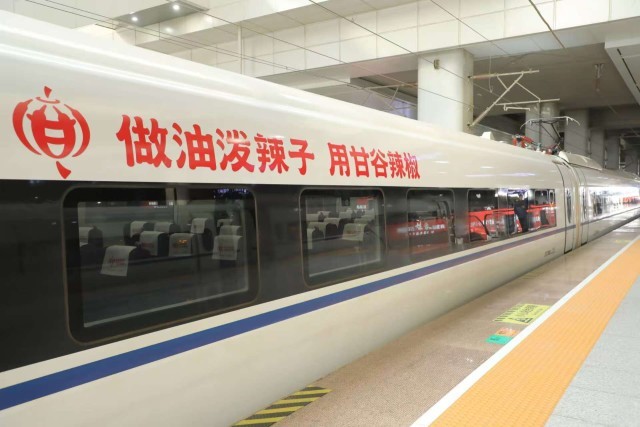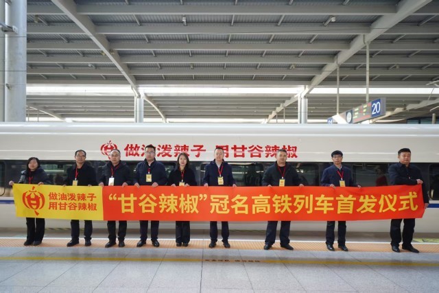 据了解,“甘谷辣椒”冠名高铁列车对应往返兰粤的G848/5、G842/3次列车,途经甘肃、陕西、河南、湖北、湖南、广东六省,串联起我国中西东部核心经济区域与消费市场。列车车厢内全方位融入甘谷辣椒品牌元素,乘客可沉浸式感受其品牌魅力与文化底蕴;这种融合方式,既为甘谷辣椒拓宽了市场渠道,更让这趟高铁列车成为名副其实的甘谷辣椒“流动品牌名片”。