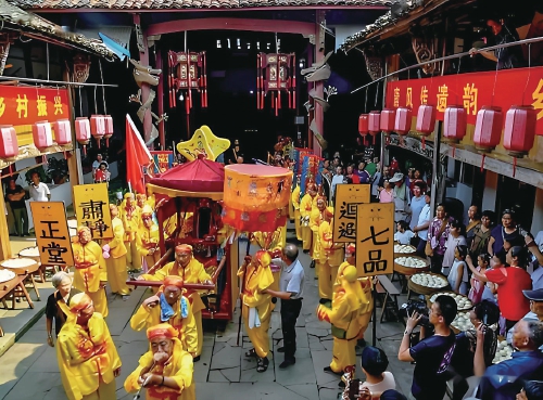 每年农历六月初一,村里人抬着杨炯塑像出巡,走村过田。有着1300多年历史的千年古村盈川,至今完整保留着“杨炯出巡”这项省级非物质文化遗产。