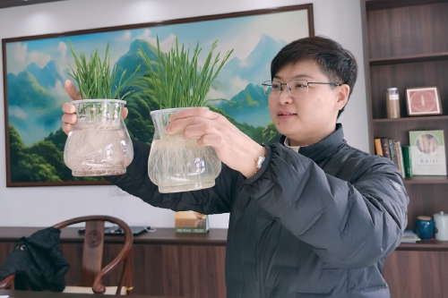 刘锐雪做小麦水肥生长实验。
