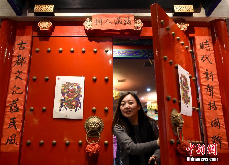1月27日,由文化和旅游部恭王府博物馆和中国文化传媒集团主办的“年画重回春节”系列活动在北京老舍茶馆拉开序幕,图为一名市民走出活动现场。中新社记者 侯宇 摄