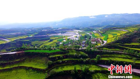 5月初,甘肃定西市漳县国家4A级森林公园贵清山公园一带,航拍镜头下金黄的油菜花田错落有致。 王金生 摄